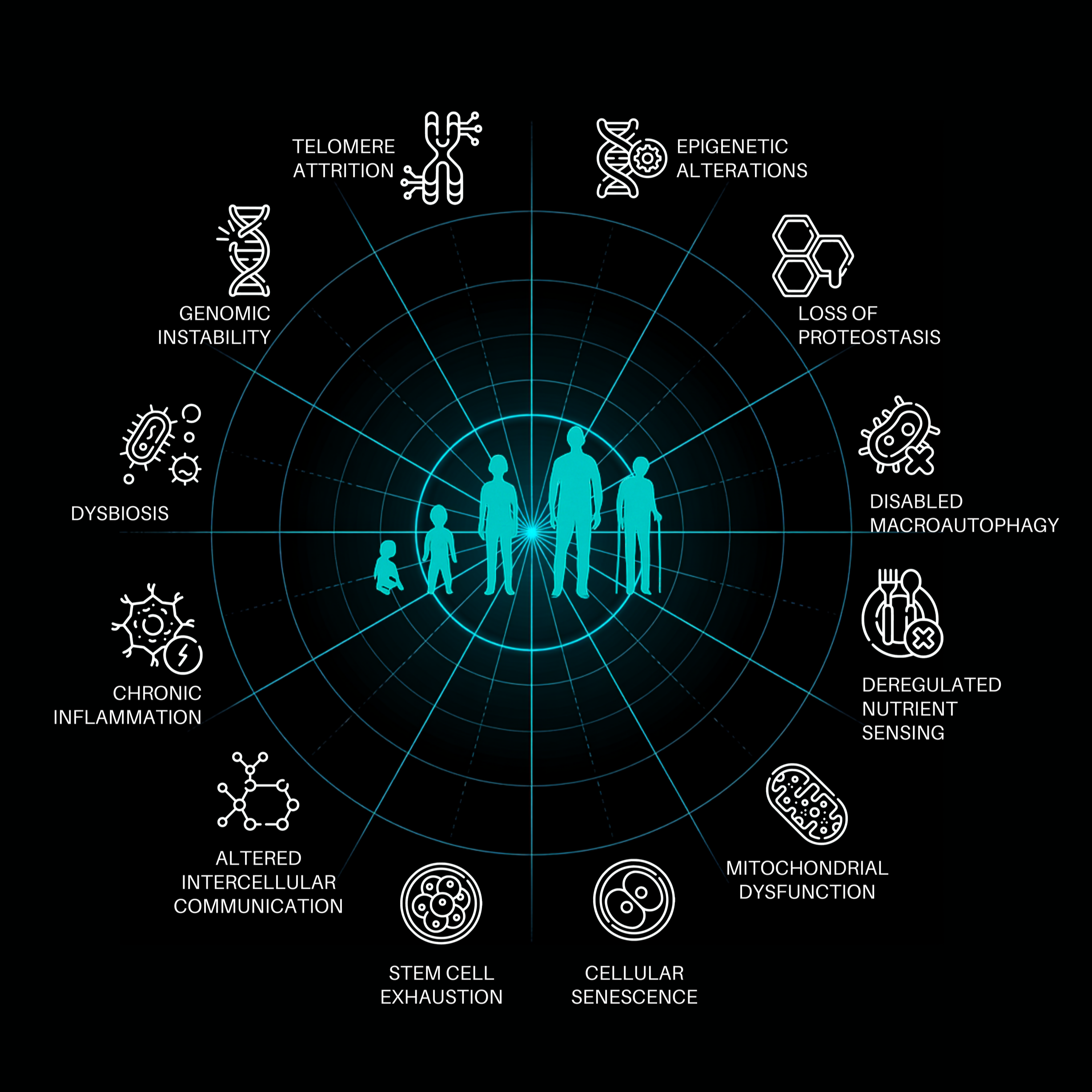 As the 12 Hallmarks of Aging illustrate, aging is not driven by a single pathway. It is a coordinated breakdown across multiple systems, including energy production, repair mechanisms, inflammation, communication, and regeneration.