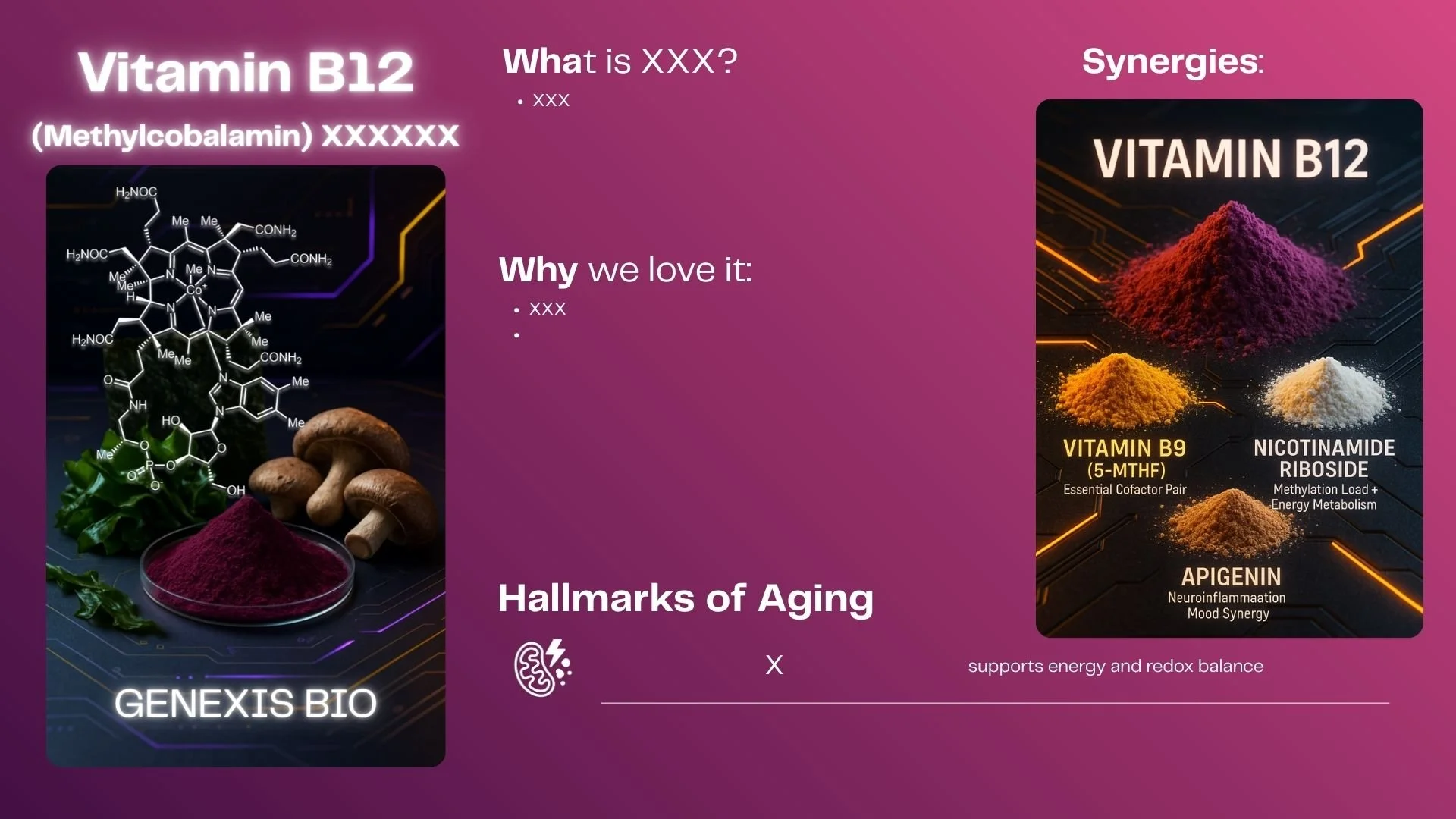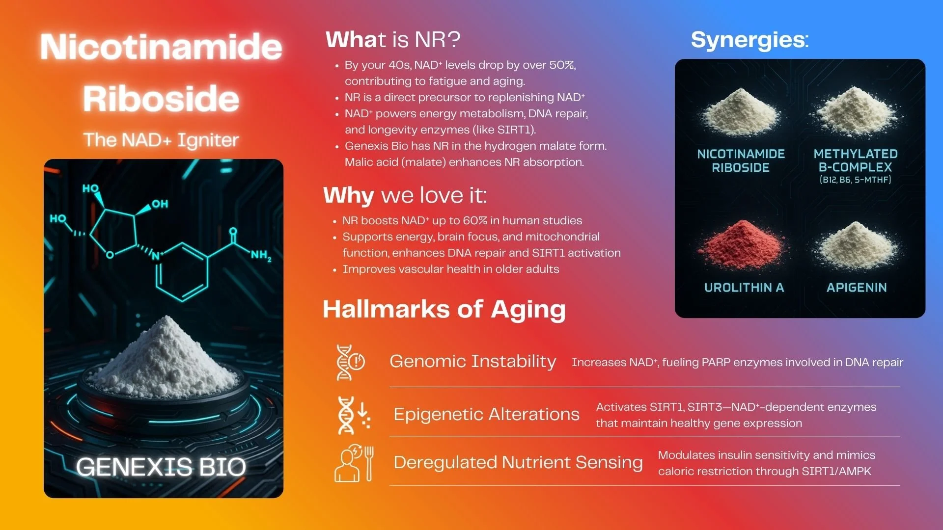 Each capsule engineered to target aging at its root: together they cover all 12 Hallmarks of Aging.