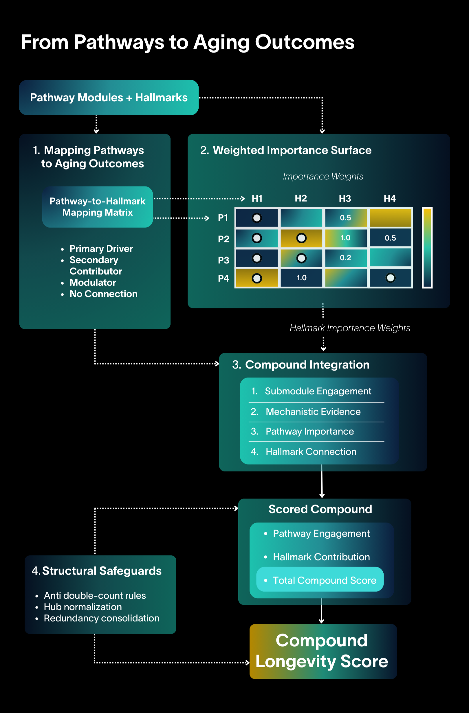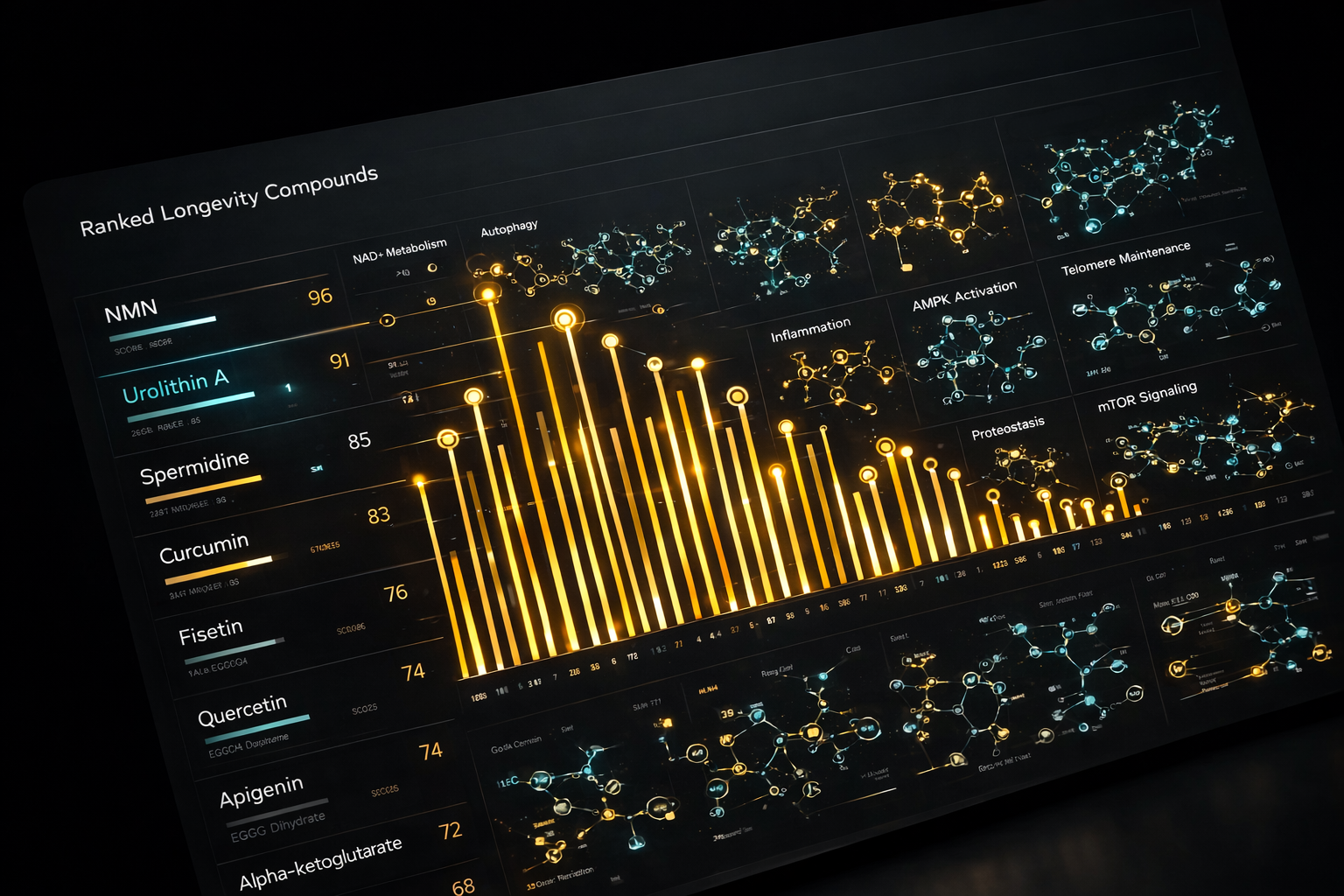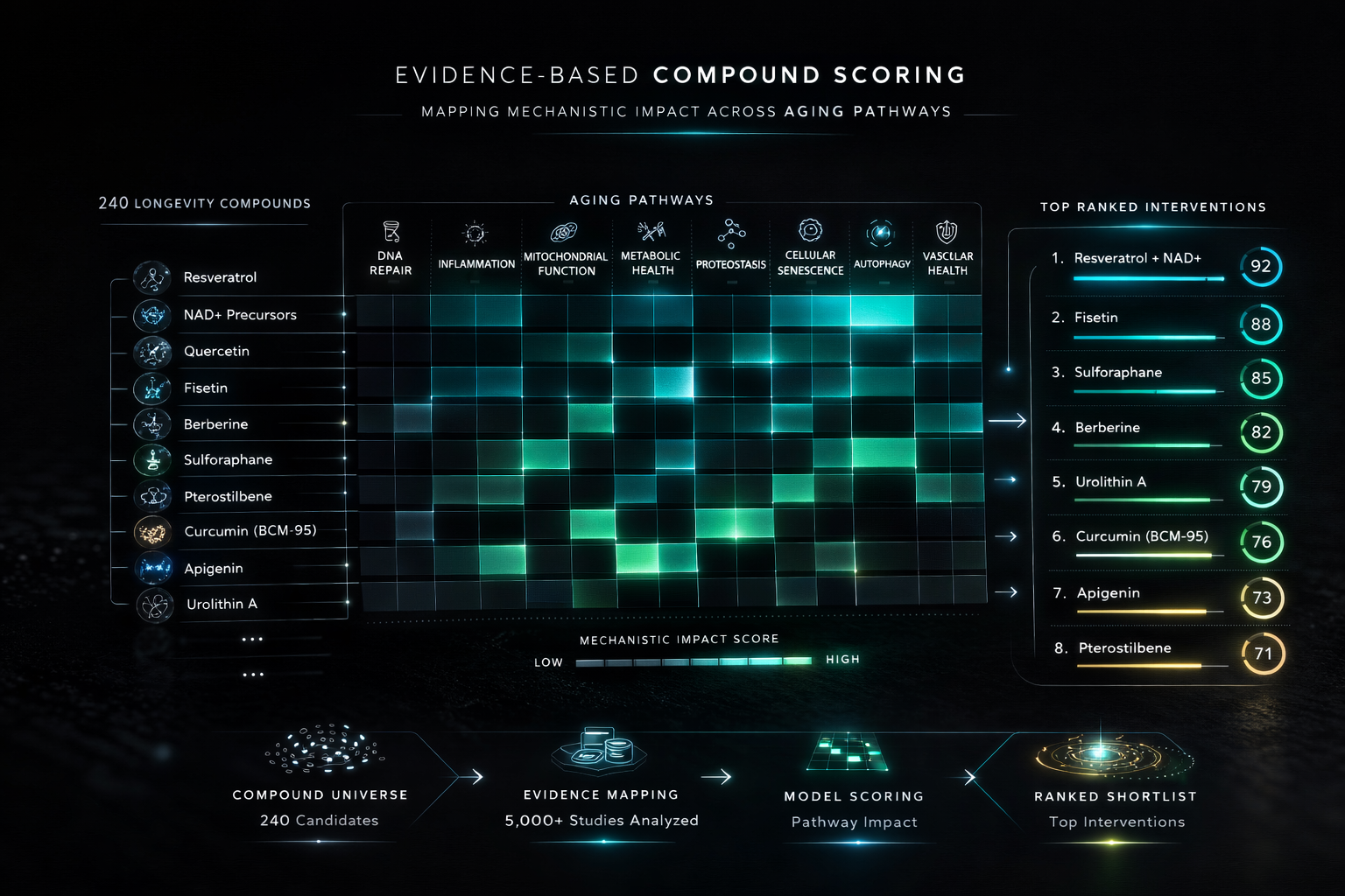 Rather than relying on individual studies, we assess how compounds influence aging biology as a system.