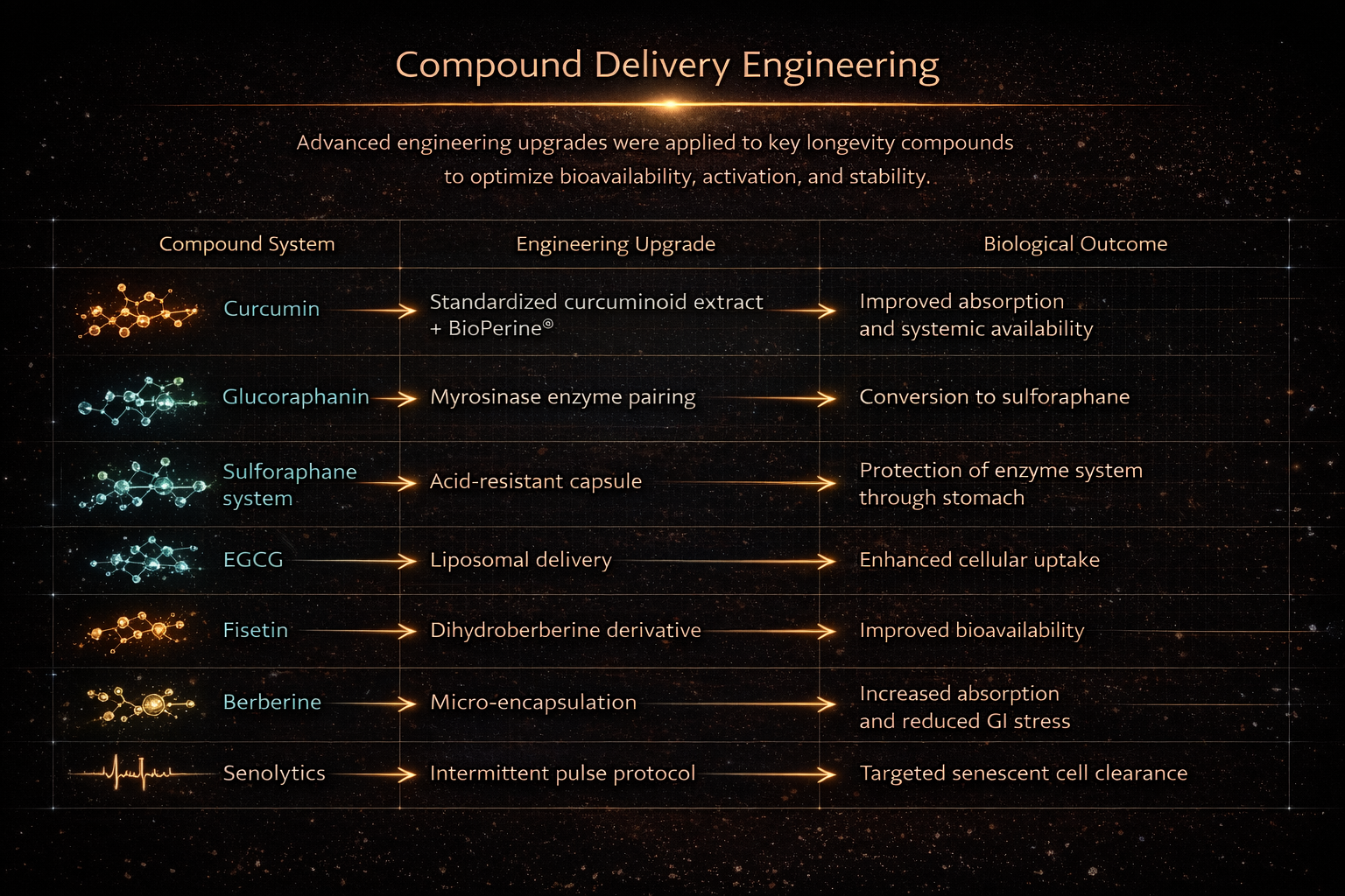 The result is a formulation architecture that preserves the scientific integrity of the optimization model while translating it into a practical longevity protocol.