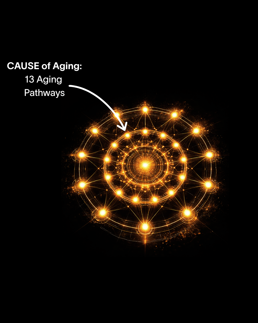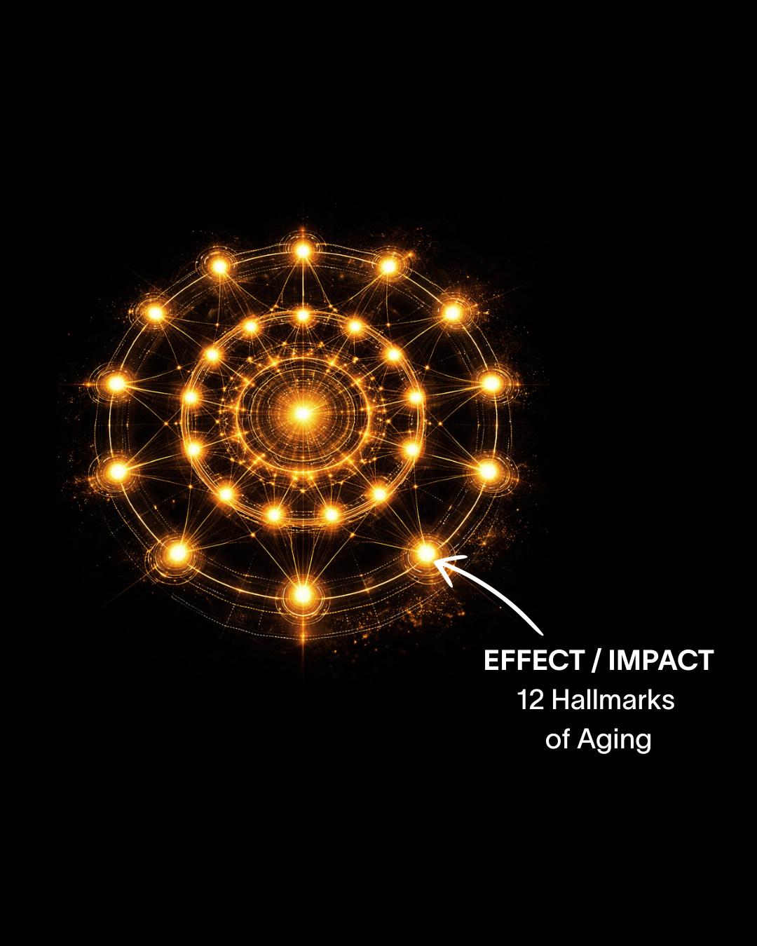 Aging is driven by interconnected biological systems. Cellular signaling networks interact, amplify, and influence multiple aging processes at once.