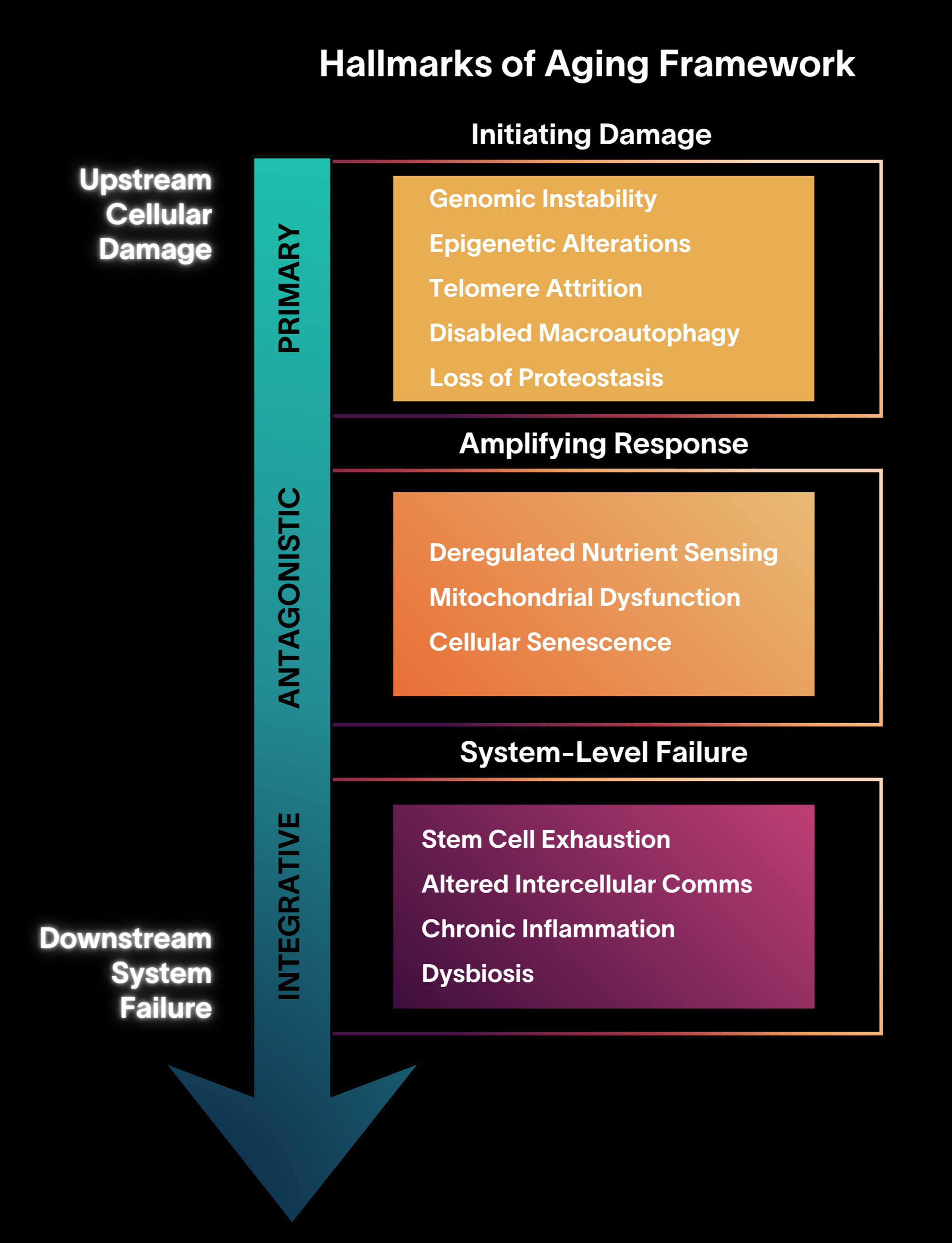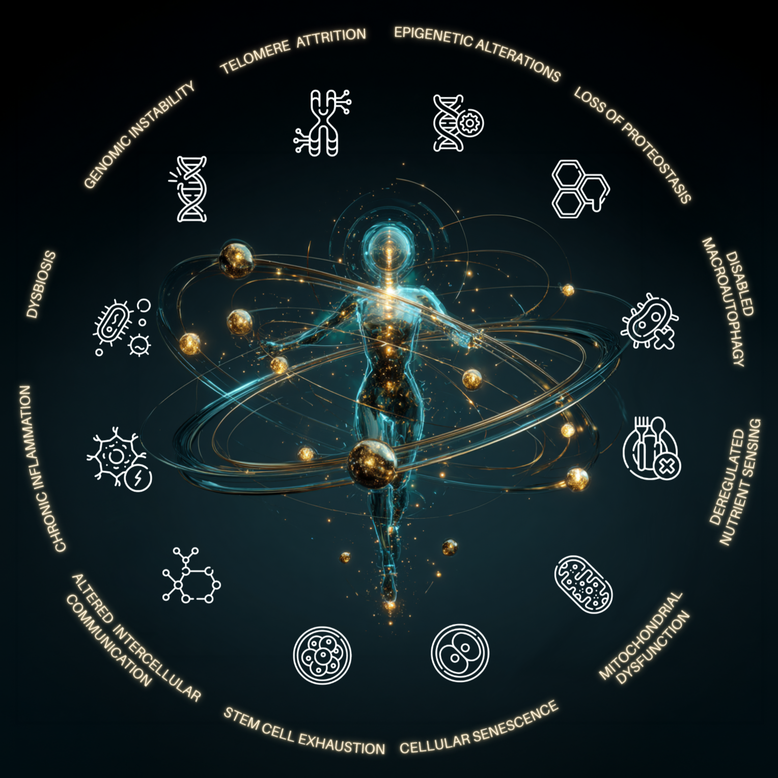 Our protocol is designed to support all 12 Hallmarks of Aging, the core processes linked to age-related decline.